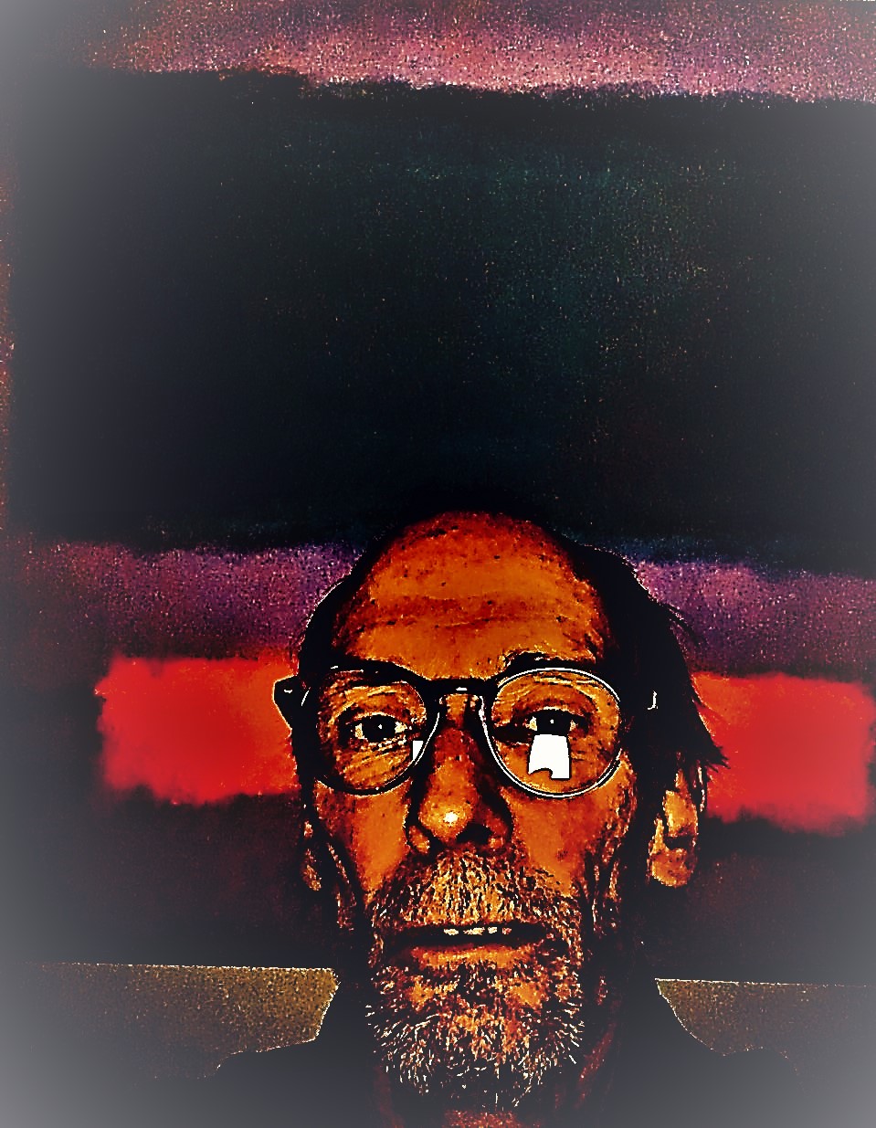 Het zaaltje is verduisterd, buiten dreunt een vuilniswagen langs. Met de ontdekte koptelefoon wordt het stil en ik probeer het te laten gebeuren. Gedachten uit te bannen en alleen maar kijken. Het is een groot doek, blauwgrijs met daarop twee kleurvlakken. Speels geschilderd waar de ondergrond doorheen schemert. Het bovenste vlak een blauwigpaars, het hangt dreigend boven het onderste wat kleiner is, langwerpig in oranjerood. Nu zie ik pas dat er een schaduw hangt, onder dat oranje. Hier zit ik dan, eindelijk. Voor me een echte Mark Rothko. Geboren Rus, Rothkowitz, later naar Amerika gegaan. Apparatski, dat woord dringt zich bij me op, altijd als ik iets Russisch hoor of zie en ik moet daar om glimlachen. Hoe lang zit ik er nu? Hoor ik die suppoost wel kloppen, zo met de koptelefoon op? Tien minuten lijkt me best lang. Dan hoor ik iets anders, in mijn hoofd zing ik; “To be alone with you”, van Bob Dylan. Van de elpee ‘Nashville skyline’, een titel alleen al die meteen allerlei beelden kan oproepen. Maar dan opeens, het oranjerode vlak maakt zich los van de ondergrond en zweeft op me toe.