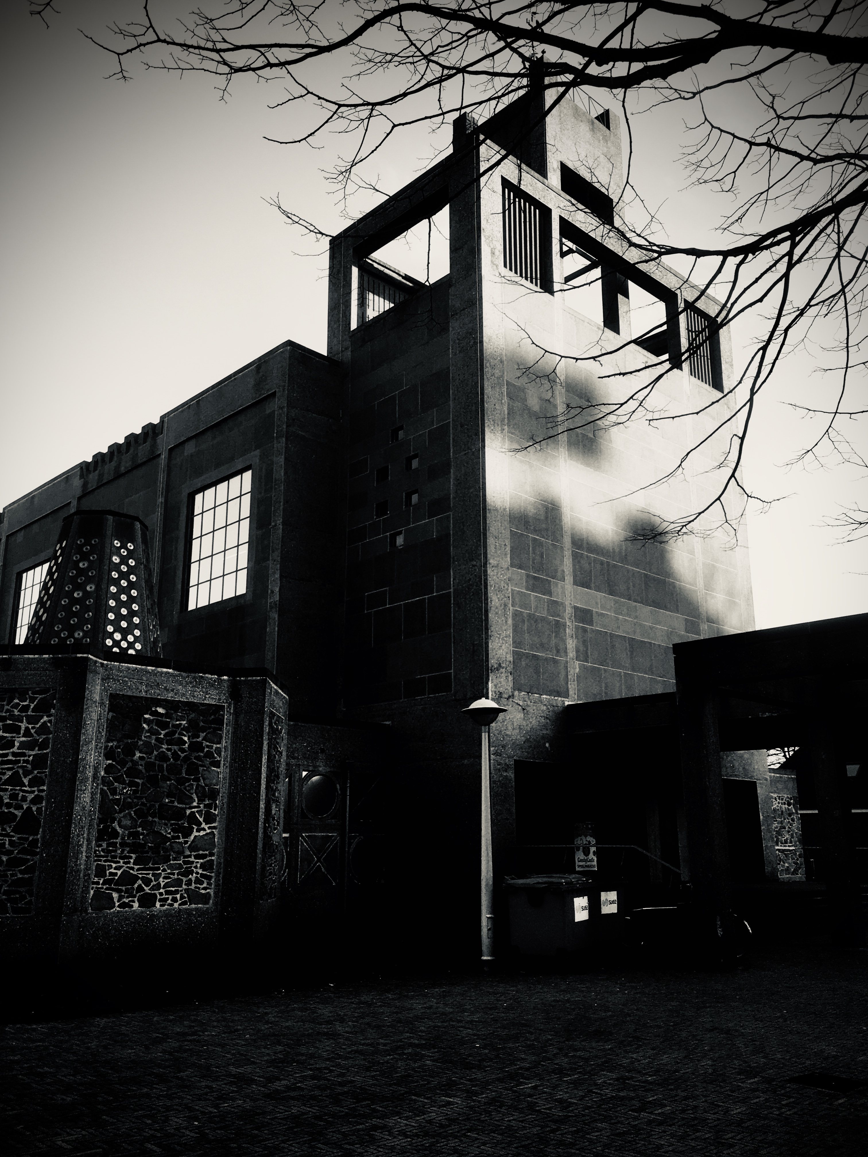Nietsziend dwaalde hij verder, tot zijn blik omhoog getrokken werd. Een kruis, een betonnen kruis op een open vierkanten blok, boven de huizen, hij herkende het feilloos. Zijn pas versnelde, daar moest hij heen, THEA, die oude tempel, waar een deel van zijn leven zich had afgespeeld. In strijd tegen de zwaartekracht, in die kille lekkende spelonk waar de muziek de muren deed dreunen en het hippe volkje met mutsjes en gele broeken klom tot het plafond, de betonnen muur hen stopte. De rauwe klimhal, Tussen Hemel en Aarde.