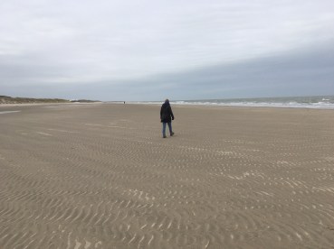 Bij de foto: opgehokt in vrijheid, op het virusvrije lege strand en bij de bacterieloze zee. Opvallend, de weinige tegenliggers hielden afstand en groetten ons vriendelijk.