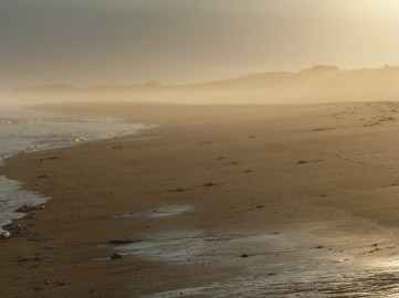 De vloedlijn is een rechte streep, zwart het blaasjeswier met blauw van visnettouw. Dat gele, dat zal een werkhandschoen zijn, kan ook een slipper zijn, een linker. Zee, waar ben je, je ebt steeds verder weg. Blijf! Ik wil je. Ik zal voorzichtig doen, geen rimpeling zal jou verstoren. Vriendelijk verzoek aan zee, neem me, neem me mee. Neem mij op en laat me drijven, draag me. In jouw koelte wil ik zijn en ik zal dromen en denken aan niets. Vandaag.