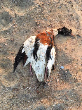 Bij de foto: De Bergeend. (Uit mijn mapje Dode Dieren, Bergeend – Schelpweg, 2020)