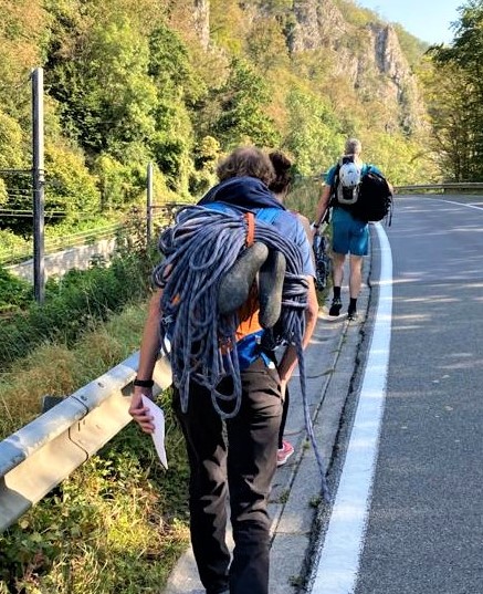 Op een van de mooiste zomerste dagen van twintigeenentwintig, de warmgestoofde kalk, de muziek van rinkelende karabiners, ‘Blok!’ en de zwiep van vallend touw. We zijn er, wat een feest, met dit clubje zo vertrouwd, het puzzelen, welk massief, welke route. Niet alles lukt, maar ach. Nina krijgt bijscholing van Lynn, boven op de zonnige standplaats. Barry en ik in een route ernaast. Bladerend in de topo herken ik veel namen, gefocussed als ik altijd daarop ben. Zoveel hier geklommen of net niet.