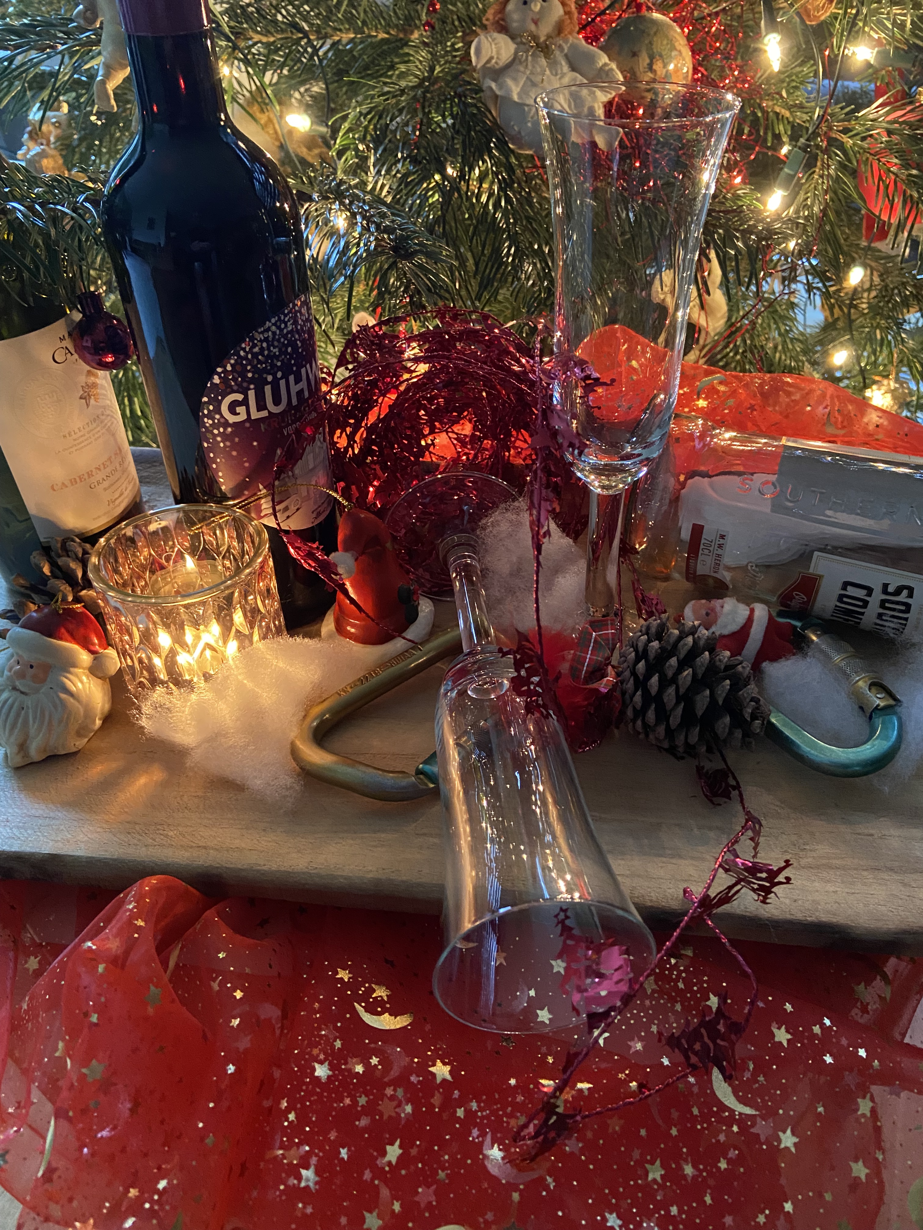 Na enige tijd werd het touw naar beneden gegooid, het kwam een paar meter verderop terecht. Met een lange schlinge verlengde hij zijn liveline en kon toen net bij het touw. Maar dan, halverwege was het in een boom die op de wand groeide beland en onmogelijk los te trekken. Hij bond zich in, klikte zich los en begon erheen te klimmen. Wild geroep van boven, of hij al aan het klimmen was, ongezekerd? O, ja dus. Even later lukte het hem, gezekerd, het touw uit de boom te krijgen en klom hij, naast de gekuiste route, dwars door struiken en prikbosjes omhoog. En zo werd het onbedoeld toch iets te avontuurlijk.
