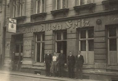 Op zoek naar Zum Alten Fritz. Een café of drinkgelegenheid met slaapzalen waar Pa in eerste instantie verbleef. Het is een uitgestrekte stad. In de buitenwijken met die typisch grote-stads-bouwstijl voel ik voor het eerst iets van een na-oorlogse sfeer. Haveloze woonblokken. Dichtgetimmerd, onbewoond. De Tomtom weet de Hermann Liebmannstrasse 17 moeiteloos te vinden. In 1943 werd dit gebouw getroffen tijdens een bombardement. Merkwaardig genoeg is in de aaneengesloten bebouwing van fraaie, haast monumentale panden op nummer 17 een gat. Kennelijk is er nooit meer iets herbouwd. Dat is in het centrum anders, hier is een hypermodern winkelgebied. Strakke gevels staan naast klassieke panden met rijke uitstraling.